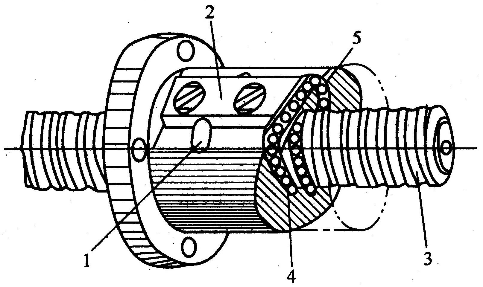 14、(主观题)下图所示滚珠丝杠,请编写调整其预紧力的方案。 滚珠丝杠螺母副 1-弯管(回珠管)2-压板 3-丝杠 4-滚珠 5-滚道
