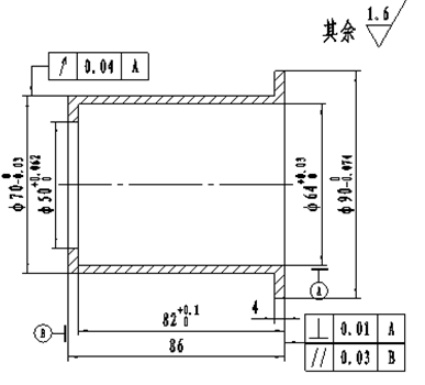 正确答案:(1)工艺分析:|①薄壁套环为薄壁台阶零件,采用锻造毛坯,材料为45钢,在粗加工前应进行正火处理。|②自由锻造余量多,采用粗、精车分段进行,粗车后进行时效处理。|③工件壁厚为3mm,在装夹时要采取措施防止工件变形。|④内孔φ64mm为基准孔,精车时应先车孔和端面。|⑤外圆φ70mm对内孔φ64mm轴线有径向圆跳动要求,精车外圆φ70mm时,应以内孔φ64mm和右端面定位。|(2)机械加工工艺过程